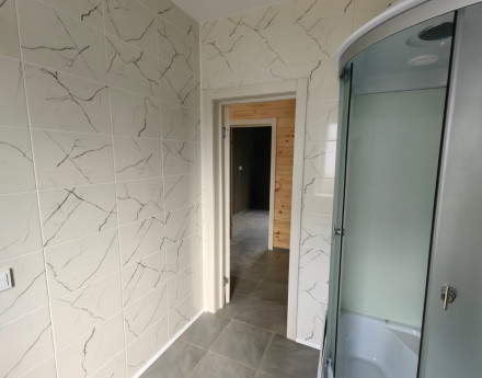 В с/у установлена вся необходимая сантехника. Коммуникации подключены и разведены по дому: электричество - 15 кВт, канализация септик, водоснабжение : скважина, отопление - газовый котел, система отопления 1 этаж теплый пол, 2 этаж на радиаторах с жидким носителем. Магистральный газ подключен. Забор по периметру участка.
