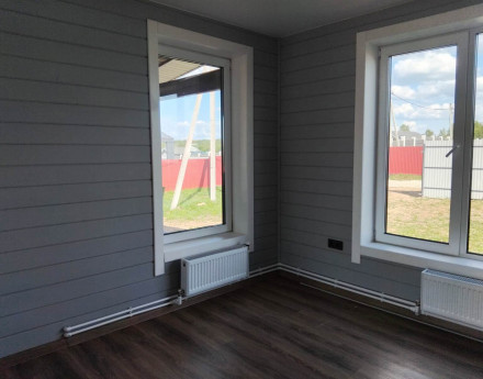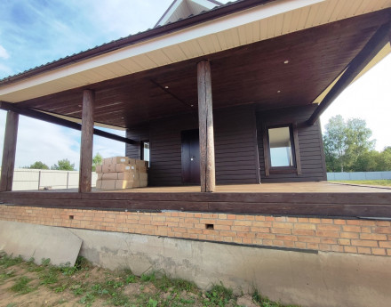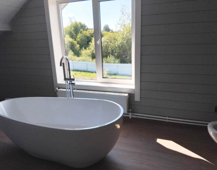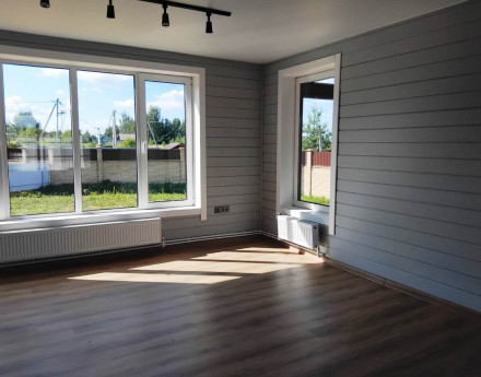Дом предназначен для круглогодичного проживания. Новый, год постройки 2024. Сделана высококачественная отделка под ключ (евроремонт), установлена сантехника и проведены все инженерные коммуникации. Осталось только поставить мебель и жить! Ленточный монолитный железобетонный фундамент с высоким цоколем. Материал стен брус. Обшит сайдингом с утеплением 150 мм. Кровля металлочерепица.