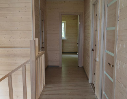 Дом деревянный, общей площадью 175 кв. м., из бруса утеплён современными утеплителями и полностью подготовлен для зимнего проживания. Фундамент ленточный, бетонно-армированный. Отмостка фундамента, и стоянка для автомобиля отсыпано щебнем. Снаружи дом обшит имитацией бруса. Внутри всё обработано антибактериальными материалами. Полы ламинат класса А .
