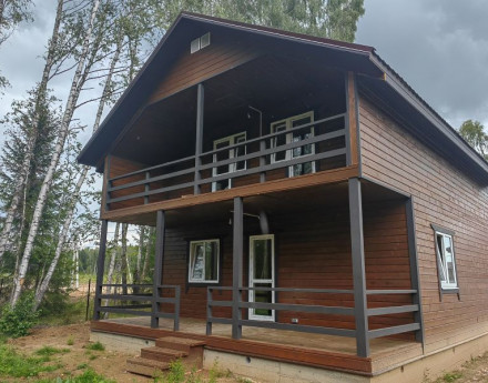 Коттедж (дом, дача) теплый, 2-х этажный с террасой, построен из бруса (дерево камерной сушки), утеплитель 150 мм, снаружи обшивка имитация бруса, фундамент ленточный армированный, крыша из металл черепицы, пластиковые окна. Внутренняя отделка деревом, на полу ламинат.