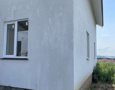 Фундамент - монолитная плита с теплыми полами. Материал стен - газобетонный блок с утеплением. Крыша - металл черепица. Окна: стеклопакеты - поворотно-откидные двухкамерные стеклопакеты с москитными сетками. Количество с/у – 2. Количество комнат – 5.Дополнительно: балкон, терраса.