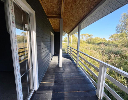 В черте города ПРОДАЕТСЯ современный дом общей площадью 136 м2 (9,5х12 метров) для круглогодичного проживания. Новый, построен в 2024 году по каркасной технологии с утеплением, обшит имитацией бруса, кровля металлочерепица. Установлены большие панорамные окна, металлическая входная дверь с утеплением, межкомнатные перегородки. Первый этаж внутри полностью покрашен. Снаружи дом обшит имитацией бруса и также покрашен.
