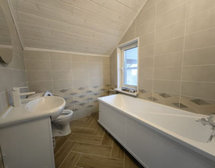 Количество с/у - 2 (с/у полностью оборудованы), сделан вывод воды и слив для стиральной машинки, гигиенический душ и сделаны вытяжки; Сан . узлы в плитке.