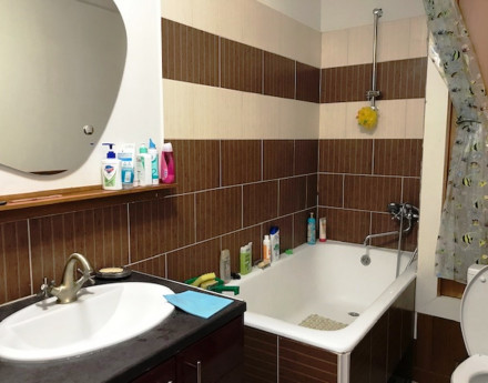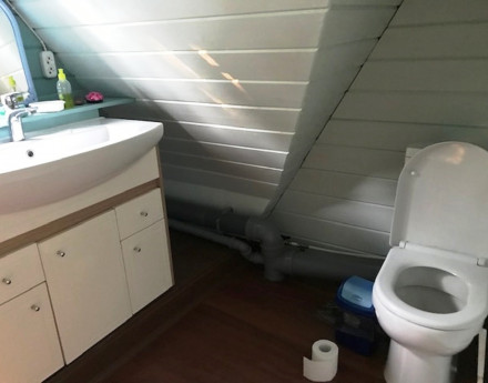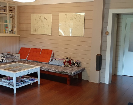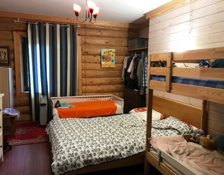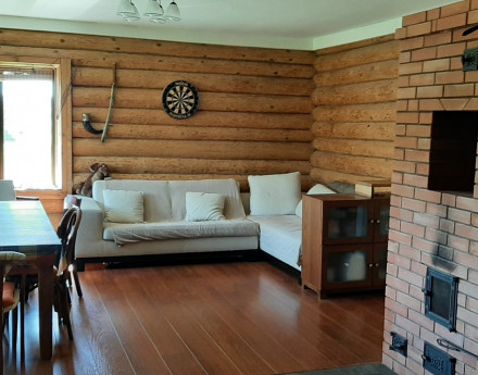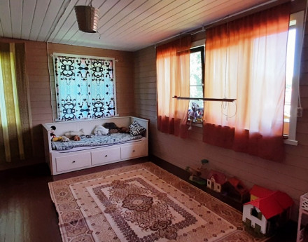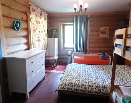 - Фундамент монолитный, высокий цоколь обложен кирпичом. Крыша мягкая черепица. Пол ламинат, окна стеклопакеты. Состоит из двух срубов от 30см в диаметре и бруса 200х200.