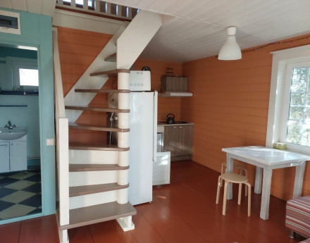- Меблирован, с мансардным этажом, на сваях, каркасный, отлично утеплен! Год постройки 2014, обновлён в 2023. Отделка внутри и снаружи имитацией бруса.