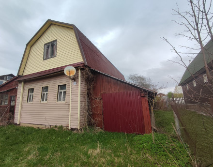 ПРОДАЕТСЯ дом с мансардным этажом, пристройкой и верандой общей площадью 46 м2. Материал стен бревно, снаружи обшит сайдингом, внутри вагонкой, кровля ондулин.