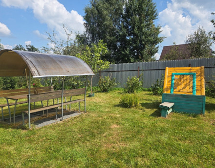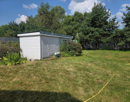 Дополнительные постройки: сарай-бытовка площадью 12 м2, дровник и теплица.