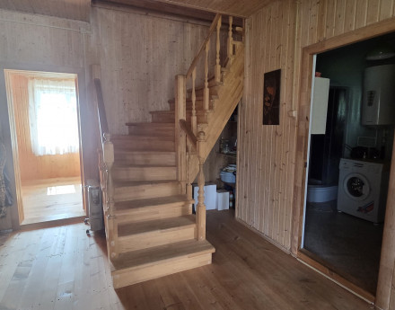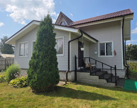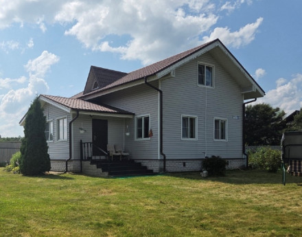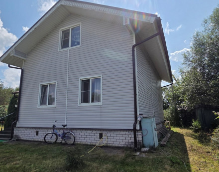 ПРОДАЕТСЯ большой благоустроенный 2-х-этажный загородный дом площадью 126 м2 на 1-й линии НЕРЛИ. Подходит для круглогодичного проживания, со всеми удобствами. В отличном состоянии. Год постройки 2010. Фундамент ленточный монолитный, высокий цоколь из белого кирпича с подвальным помещением. Материал стен из бруса. С утеплением, внешняя отделка выполнена сайдингом, внутри стены обшиты профилированной доской. Кровля металлочерепица с водосточной системой. Окна стеклопакеты, входная дверь металлическая.