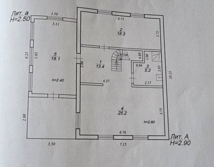 На 1 этаже: веранда с крыльцом 18 м2, прихожая 13,4 м2, жилая комната 18,3 м2, совмещенный санузел 5 м2, кухня-гостиная 25 м2, спальня 18 м2. Общая площадь первого этажа 80 м2.