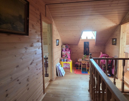 На 2 этаже: комната-спальня 22 м2, зал 9м2, жилая комната 15 м2. Общая площадь мансардного помещения 46 м2.