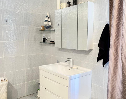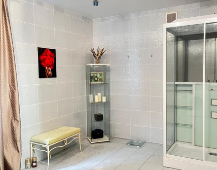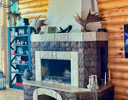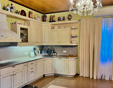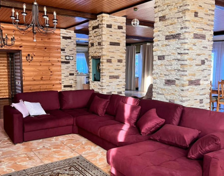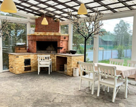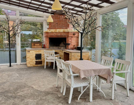 ПЕРВЫЙ ЭТАЖ: большое пространство разделенное на отдельные зоны, кухня переходящая в столовую с выходом на большую застекленную веранду с барбекю. Гостинная со вторым светом и камином. Гостевой туалет. Большая душевая комната с туалетом и стиральной машиной. Кладовая. Так же на первом этаже расположена спальная комната, большая прихожая-гардеробная для верней одежды, технические помещения с отдельным входом. Система очистки воды, теплые полы, газовый котел, электрический котел.