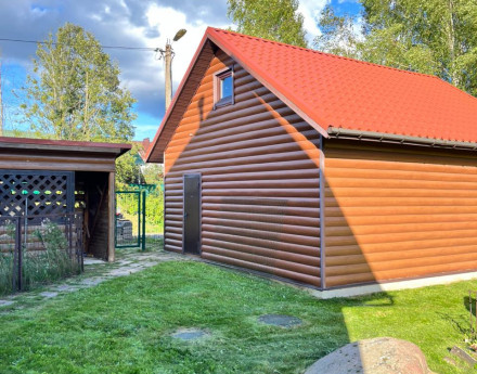 На участке расположены ЭЛЛИНГ и два ГАРАЖА, 2 из них двухэтажные. Двухэтажная БАНЯ 160 квадратов. Первый этаж парилка, душевая. Второй этаж зона отдыха с кухонным гарнитуром (посудомойкой, плитой) и двумя кроватями. Баню можно использовать, также как гостевой дом. Есть стоянка на 4 машины.