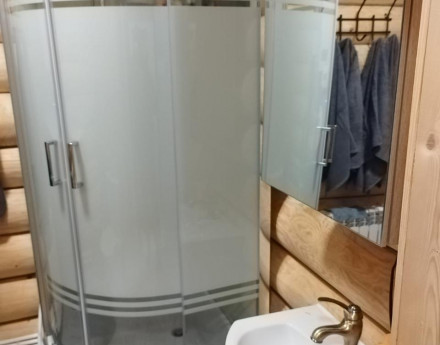 Ванная комната с душевой кабиной, туалетом, умывальником.