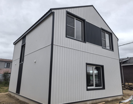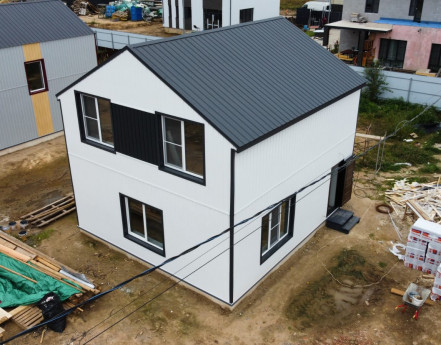 В продаже трендовый двухэтажный дом в скандинавском стиле пл. 120 м кв. на участке 5 от застройщика из пеноблока .