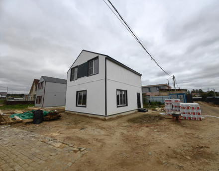 В комплектации дома удобная продуманная планировка с жилой комнатой на первом этаже : 1 этаж: прихожая, просторная кухня-гостиная, санузел, удобная лестница на 2 этаж. ; 2 этаж: 3 спальни ,холл. Инженерные сети: - электричество 15 кв - отопление электрическое; 1 -2 этаж радиаторы в каждом помещении. - скважина, в доме горячая/холодная вода, бойлер горячей воды. - индивидуальные локально очистные сооружения (канализация) - в санузлах унитазы, умывальники, душевая кабина. - магистральный газ проходит по границе участка.