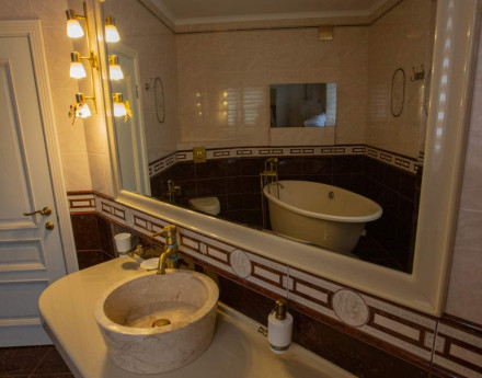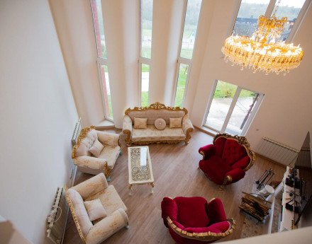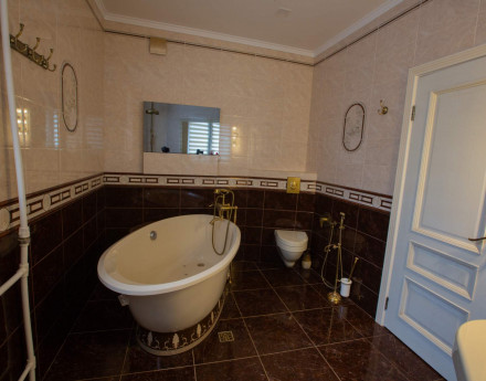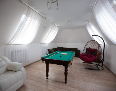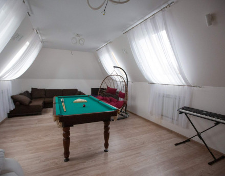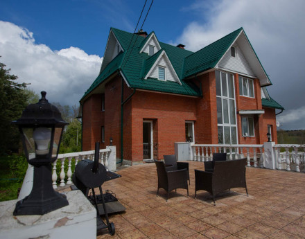 На участке расположен кирпичный коттедж, полностью готовый к проживанию, невероятно уютный и очень функциональный. Интересная планировка, гостиная со вторым светом, спальни на первом этаже, зимний сад и кухня. Также оборудована сауна. На втором этаже три спальни, огромная гардеробная - мечта любой женщины, бильярдная для отдыха. Есть кухня для обслуживающего персонала. Есть выход на террасу для отдыха с видом на потрясающую природу Подмосковья.