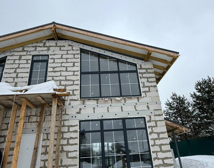 Дом построен в 2025г. по индивидуальному проекту из газобетонных блоков и кирпича. Внутренней отделки нет, что позволяет сделать все под свой вкус.