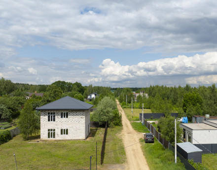 Хорошая дорожная развязка, удобный подъезд к дому.