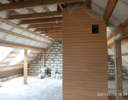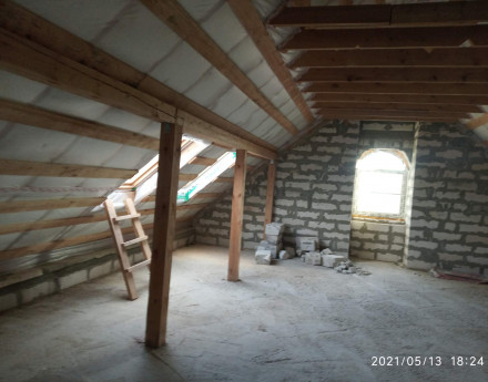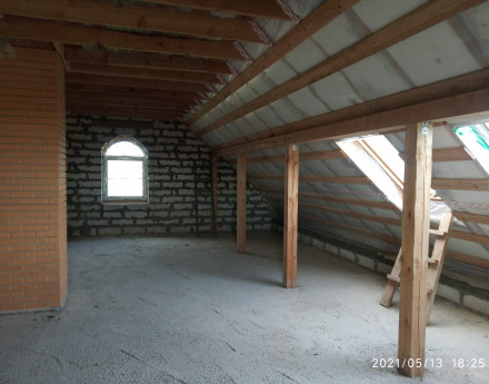 Мансардный этаж светлое утепленное помещение 80 кв. м, 4 окна 2 из них мансардные в крыше). Крыша - мягкая кровля, утеплена утеплитель 200мм.