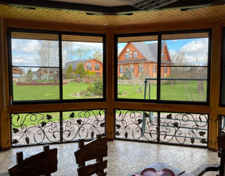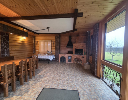 4. Застекленная беседка с летней кухней и барбекю (мангал/казан) на 8-12 посадочных мест с террасой и фонтаном.