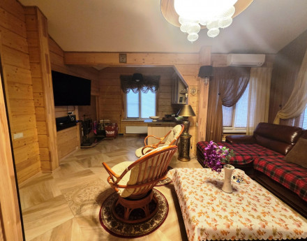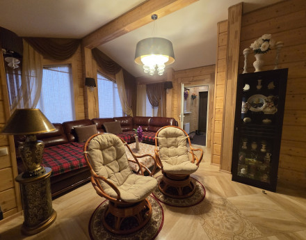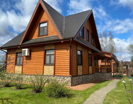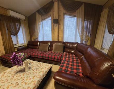 1. 2-этажный жилой ДОМ 150 м2 из пеноблоков с отделкой блокхаусом. Год постройки 2010. Полностью меблирован итальянской мебелью. С кондиционерами. Теплый кафельный пол. Два санузла. Подвал с отдельным входом.