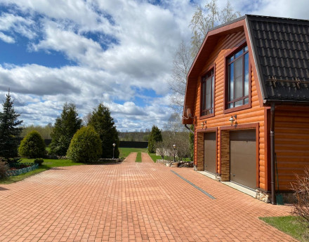 3. 2-этажный ГАРАЖ 142 м2 из пеноблоков с отделкой блокхаусом. Год постройки 2011. 1 этаж: два больших машиноместа; 2 этаж жилой: 3 спальни, кухня-столовая, санузел. Возможно круглогодичное проживание.