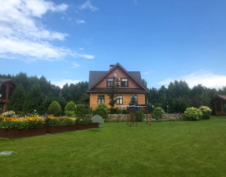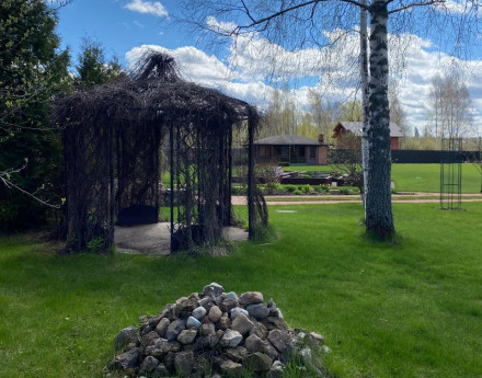 Общая площадь земельного участка 61 сотка (6124 м2). Дорожки из камня. Клумбы. Ландшафтный дизайн. Огород с двумя стационарными теплицами, яблоневый сад, много декоративных насаждений: туи, гортензии, розы, пионы.