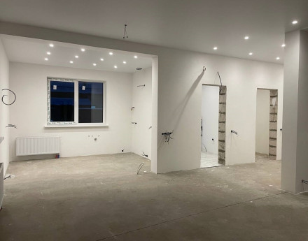 Отделка White box: В доме установлены межкомнатные стены; выполнена разводка всех коммуникаций; натяжной потолок; оборудована котельная под ключ.
