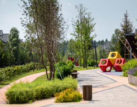 Безопасные прогулочные зоны, детские площадки и, конечно, бескрайний лес — лучшая игровая и школа для познания мира.