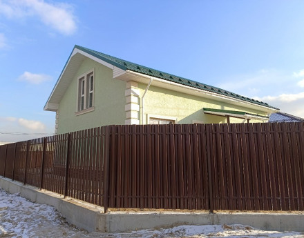Земельный участок: 6 соток, ровный, правильной формы, перед домом предусмотрено место для парковки 2-х авто. Забор - металлический штакетник высотой 2м.