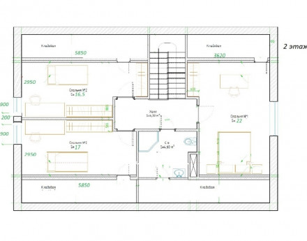 2 этаж: Три спальни (17/16,5/22), с/у с душевой, много мест для хранения.