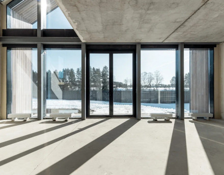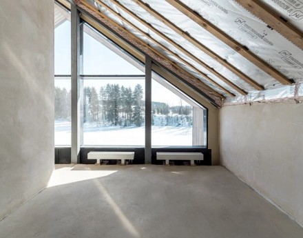 Единый современный стиль. Панорамное остекление стирает границы между домом и лесом. Доступны видовые лоты с прямым видом на ваше собственное озеро (акватория 17,6 Га!).