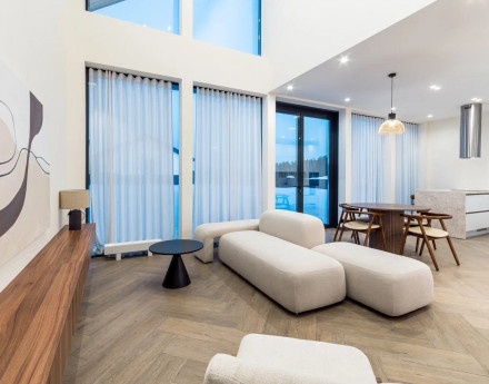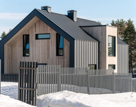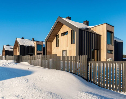 Единый современный стиль. Панорамное остекление стирает границы между домом и лесом. Доступны видовые лоты с прямым видом на ваше собственное озеро (акватория 17,6 Га!).