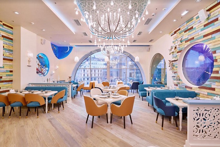 Так, например, в «Центральном Детском Магазине на Лубянке» открылось детское кафе «Волшебная страна Ангария» с «ледяной пещерой» – сказочной игровой комнатой, украшенной скульптурами из настоящего льда. Ресторан площадью около 400 кв. метров расположен на четвертом этаже с видом на главный атриум и легендарные механические часы.