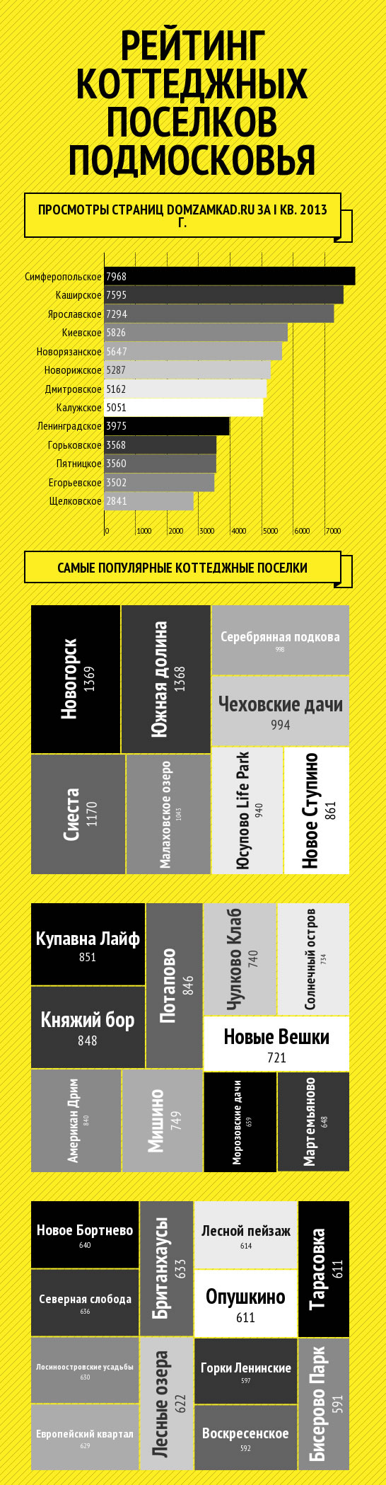 Мы решили выяснить, какие коттеджные поселки Подмосковья были больше всего интересны пользователям в 2013 году. Данные брались не на основе голосований, опросов или премий, а из статистики сайта DOMzaMKAD.ru - страницы каких поселков были наиболее интересны пользователям.