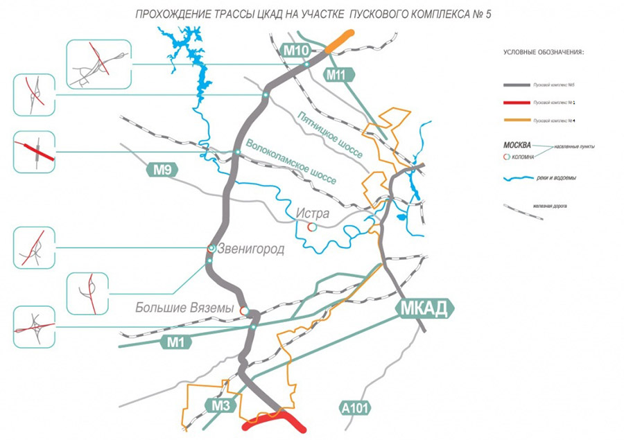 Согласно проектной документации начало пускового комплекса № 5 ЦКАД проходит по участкам: