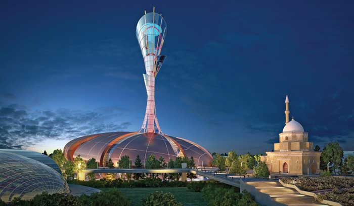 Религиозные объекты — православную церковь, иудейскую синагогу, мусульманскую мечеть и буддийский храм — предлагается разместить вокруг здания вдоль «Аллеи мира». Авторы проекта отмечают, что храмы, вероятно, будут частично действующими. Между ними будут курсировать экскурсионные поезда. На территории комплекса также появятся крупные ландшафтные сооружения и «Фонтан мира и добра».