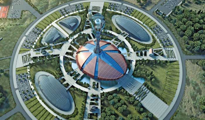 В центре парка будет расположен многофункциональный центр «Дом Народов», представляющий собой сплюснутый шар со стеклянной башней. По замыслу архитекторов, здание будет символизировать зерно. Из «зерна» будет «произрастать» башня «древо жизни» — символ новой жизни и стремления ввысь.