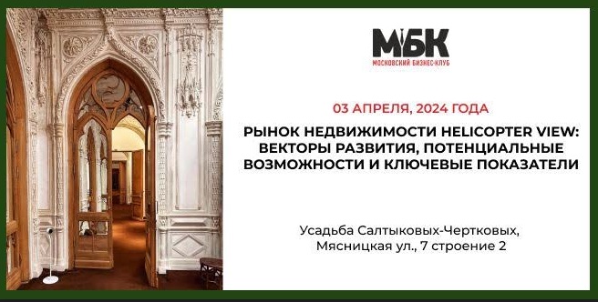 3 апреля, Московский Бизнес Клуб приглашает Вас принять участие в ежегодной весенней бизнес-конференции «Рынок недвижимости helicopter view: векторы развития, потенциальные возможности и ключевые показатели».