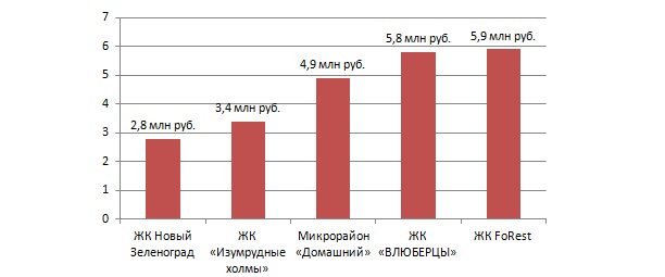 ЖК Новый Зеленоград от застройщика IKON development предлагает самые бюджетные лоты в нашем рейтинге. Квартира-студия 24,3 м² обойдется всего лишь в 2,8 млн руб., стоимость квадратного метра в жилом комплексе начинается от 82,5 тыс. рублей. Объект находится в зеленом районе Подмосковного близ города Зеленоград, рядом с заповедными лесами. Стильная архитектура зданий, современная инфраструктура, а также транспортная доступность объекта. При такой низкой цене проект гарантирует стабильность инвестиций: три дома объекта уже заселены, два возведенных дома вводятся в эксплуатацию в ближайшее время, а два других корпуса находятся на этапе строительства.