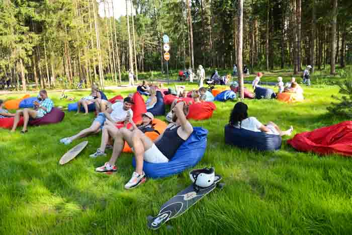 На территории в 25 гектаров проложены 8 км тропинок из щепы и 10 км асфальтированных дорожек для велопрогулок, катания на роликах и веломобилях.