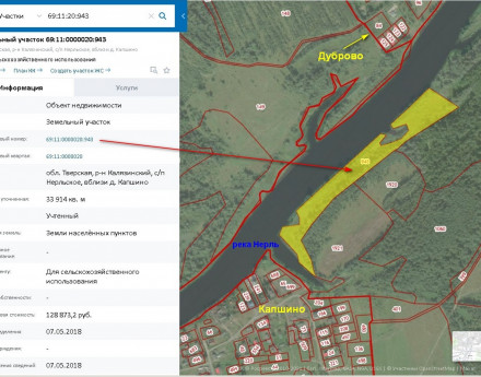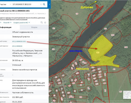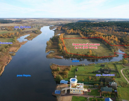 Предлагаются к продаже 2-а земельных участка в деревне Капшино Нерльского сельского поселения Калязинского района Тверской области общей площадью 6,4 га (560+80 соток). К № 69:11:0000020:1921, К № 69:11:0000020:401. Категория земель – земли населенных пунктов. Вид разрешенного использования – для передачи в аренду или распоряжения иным способом, для иных видов сельскохозяйственного использования (разрешенное использование легко меняется на «жилищное строительство»). Цена - 20 000 000 рублей (разумный торг). Продается как единый массив. Очень красивые места. Собственная береговая линия длиной 200 м. залива реки Нерль. Пологий берег. Дно песчаное. Ширина залива 30 метров, ширина реки Нерль 100 м. Большая деревня. Есть магазин, медпункт, церковь. Электричество проходит по границе участка. Возможность подключения есть. Река, леса, поля. Рыбалка, охота. До реки Волга (Угличское водохранилище) – 11 км. по реке Нерль. Рядом Скнятинское охотничье хозяйство, лодочная станция и рыбохозяйство. До гор. Калязина 36,0 км., до МКАД 180 км. Приятное место для коттеджного поселка, базы отдыха (аренда домов), Охото-Рыболовной базы и т.д.