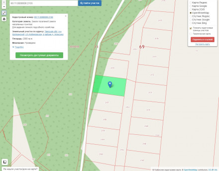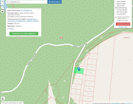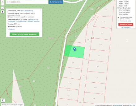 Прошел процедуру межевания и зарегистрирован в базе Росреестра. Границы установлены в новой системе координат. Кадастровый номер: 69:11:0000008:2155