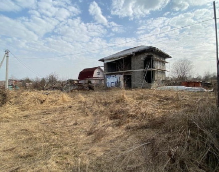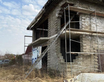 - ГОСТЕВОЙ ДОМ (объект незавершенного строительства) площадью 104 м2 (8х13), фундамент ж/б плита, стены из керамзитобетонного блока, временная кровля, высота потолка 4 метра, панорамное видовое окно на два этажа.