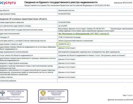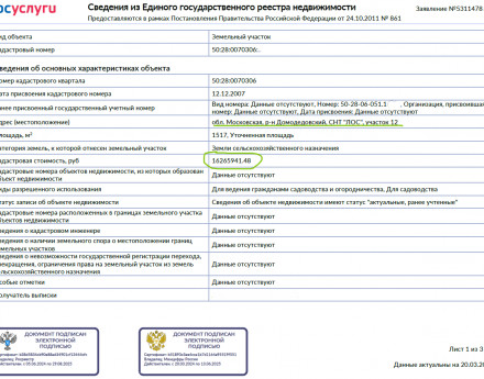 Текущая кадастровая стоимость участков: 16.265.941 рублей и 16.490.159 рублей (копии выписок из ЕГРН прилагаются в фотографиях)