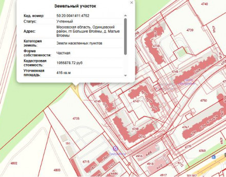 Продается земельный участок от СОБСТВЕННИКА общей площадью 4,16 сот Расположение: Московская область, Одинцовский район, д. Малые Вяземы. Земельный участок расположен в 28 км от МКАД.