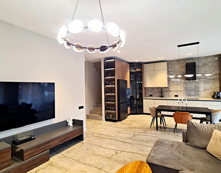 Предлагается к продаже уютный дуплекс 186 квадратных метров с мангальной зоной и зоной отдыха на заднем дворе площадью 3 сотки.