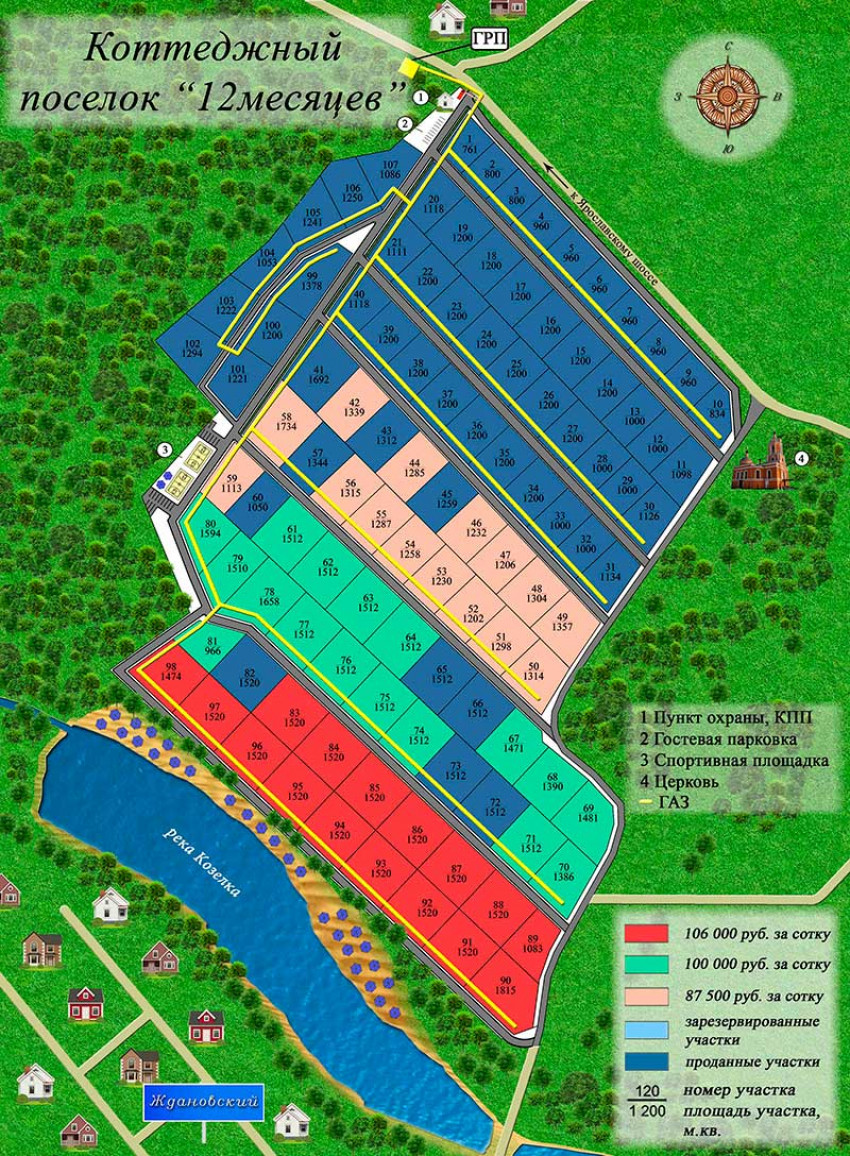 Поселок небольшой — 107 землевладений от 8 до 18 соток. Документы о собственности уже подготовлены.