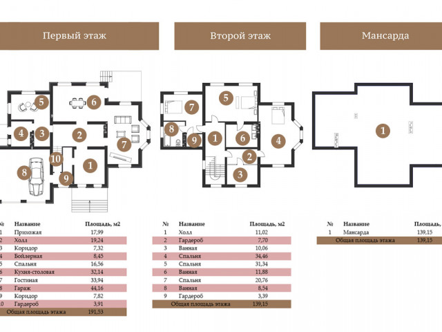 Дома от 156 до 334 м2. Участки от 3 до 16 соток.