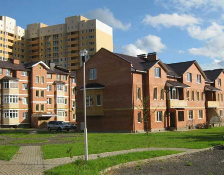 В новом поселке на территории в три гектара выстроено 56 сблокированных коттеджей по двум проектам: